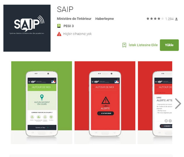 EURO 2016 uygulamaları arasından amacıyla sıyrılan SAIP (Système d’alerte et d’information des populations) isimli uygulama, Fransa'da yaşanacak herhangi bir saldırı olması durumunda kullanıcıların akıllı telefonlarına uyarı mesajı göndererek durumdan haberdar edecek bir uygulama. Uygulama İngilizce ve Fransızca olmak üzere iki dilde hizmet veriyor. Uygulama, bombalı veya silahlı saldırı durumunda kullanıcının ekranına kırmızı renkte bir uyarı mesajı gönderecek.