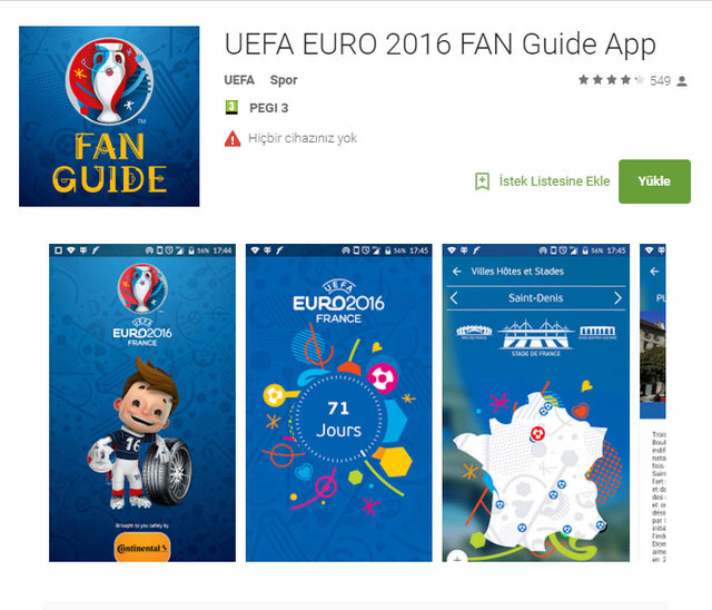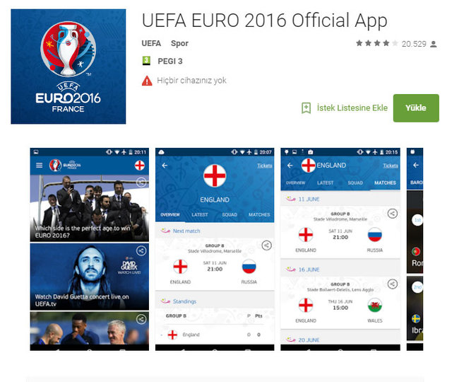 Hem iOS hem de Android'de kullanılan UEFA EURO 2016 Offical uygulaması, EURO 2016'nın UEFA tarafından sunulan resmi uygulaması. Uygulama kapsamında favori takım ve futbolcunuzu seçerek, kişiselleştirip, uygulamayı kullanmaya başlıyorsunuz.