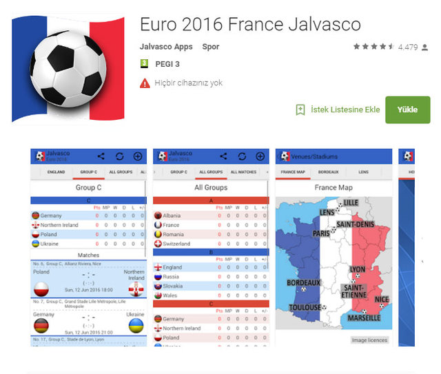 Euro 2016 France Jalvasco uygulamasıyla, futbol maçlarını takip edebilir, kendinize göre uygulamayı özelleştirebilirsiniz. Yedek oyuncular, oyuncu değişikliği dahil maça dahil tüm detayları görebileceğiz uygulamanın offline moduda var.