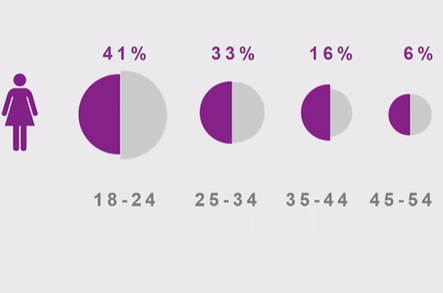 Yaş kırılımına göre kadın Instagram kullanıcıları