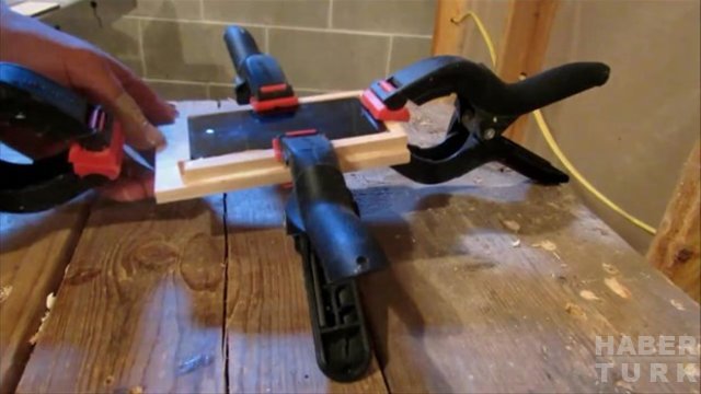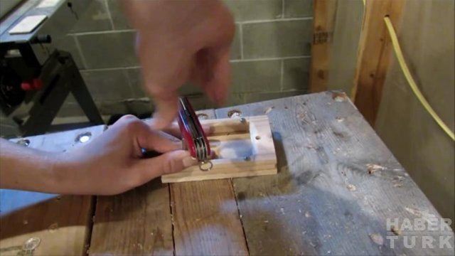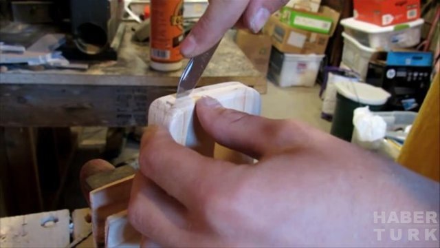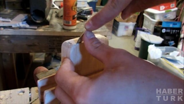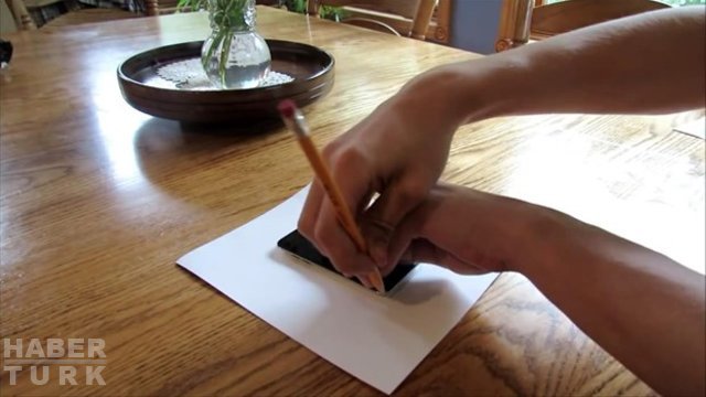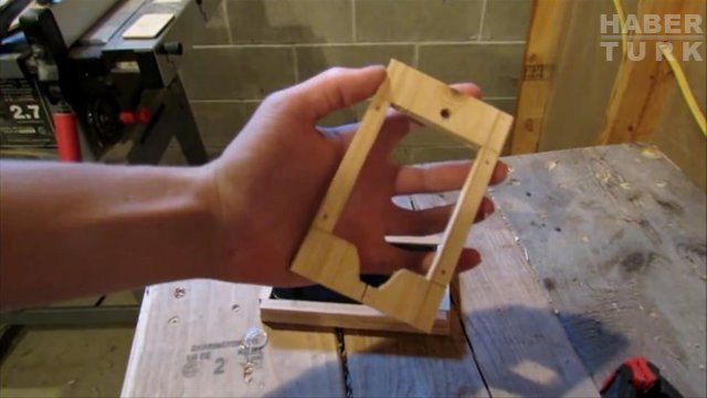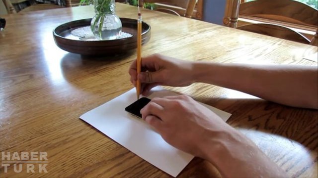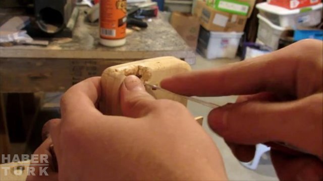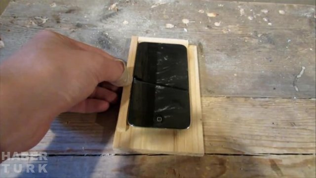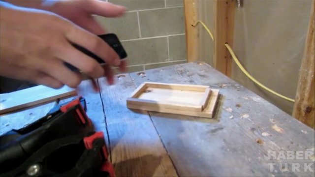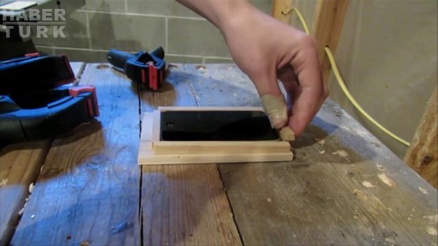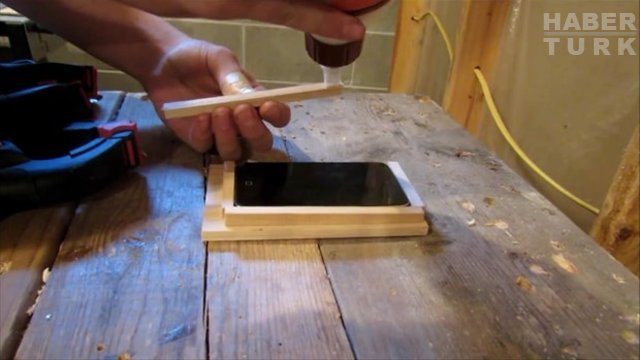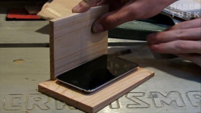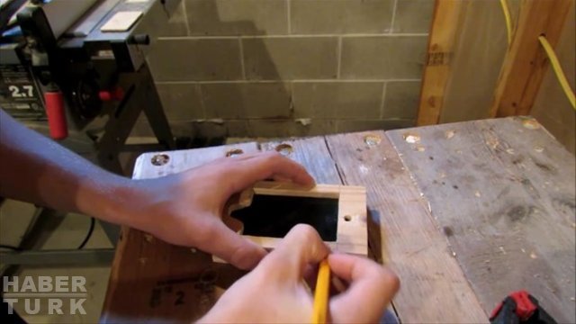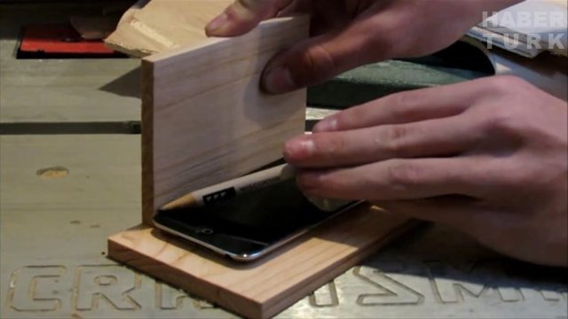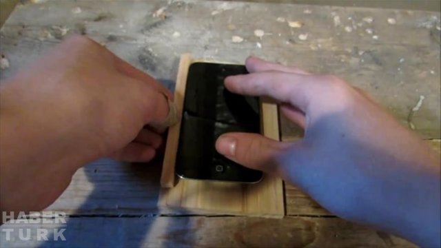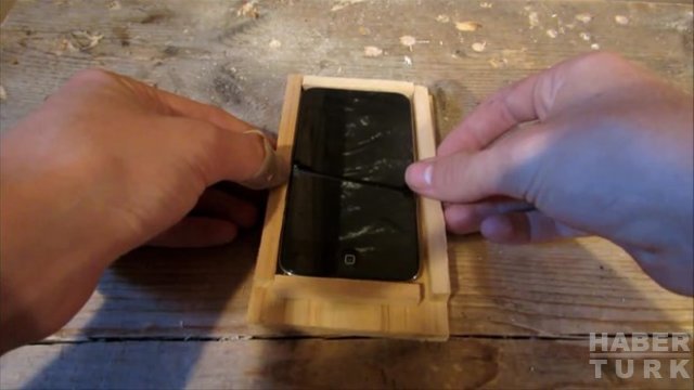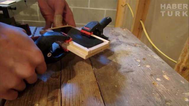 Ağaçtan bir kılıf yapmayı düşünen adam öncelikle telefonunun boyutlarını ölçtü.