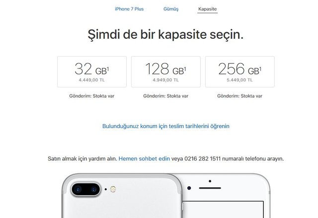 Ancak 999 dolarlık fiyat etiketi ABD satış fiyatı. Yine de bu bilgi Türkiye satış fiyatı hakkında bir ipucu verebilir. Aşağıda iki ülkede şu anki iPhone 7 Plus Gümüş renk 128 GB satış fiyatlarına baktığımızda aradaki farkın yaklaşık 1850 TL olduğu görülüyor. (12 Mayıs döviz kurları göz önüne alınarak*)