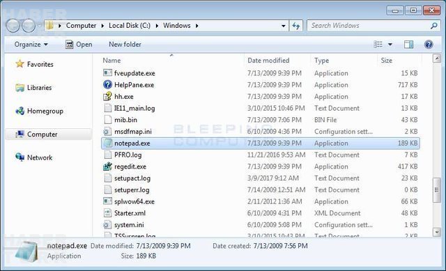 C:\Windows klasörüne girin. Notepad.exe dosyasını bulun ve sol tuş ile seçin. Daha sonra Ctrl + C ve Ctrl + V tuşlarına basarak dosyayı aynı yere kopyalayın.