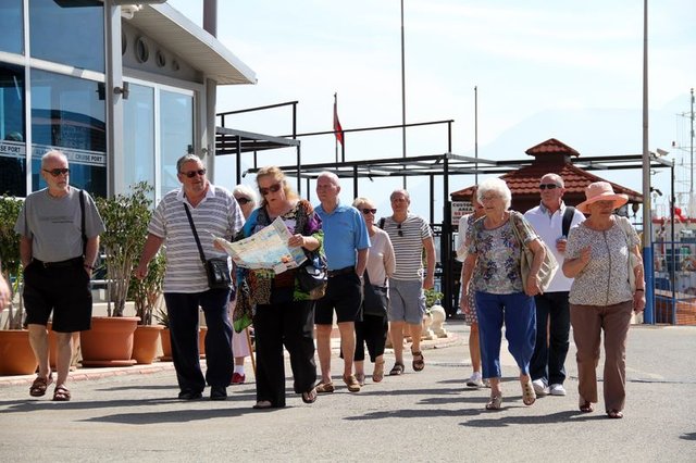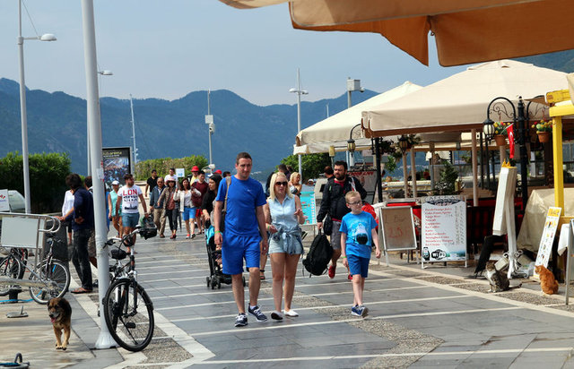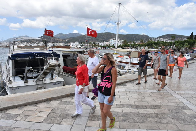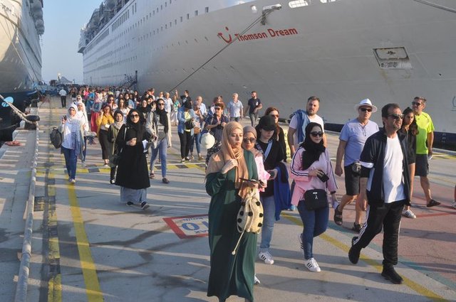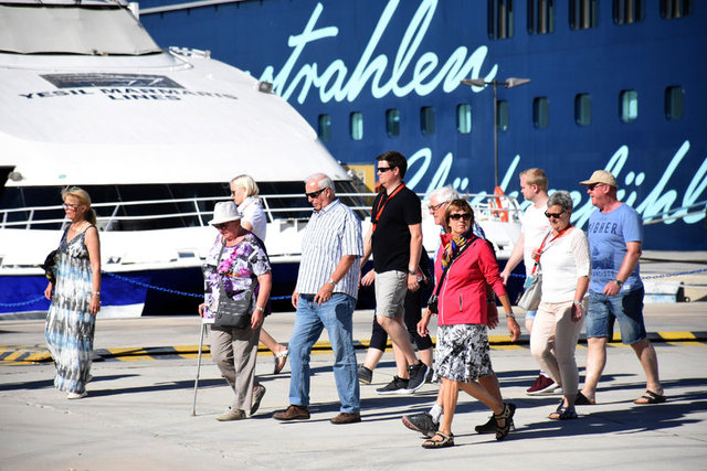 Gemiden inen turistler, sahilde yürüyüş yapıp, ilçe merkezini gezdi. Alışveriş yapanların yanı sıra bazıları da tarihi yerleri ziyaret etti.