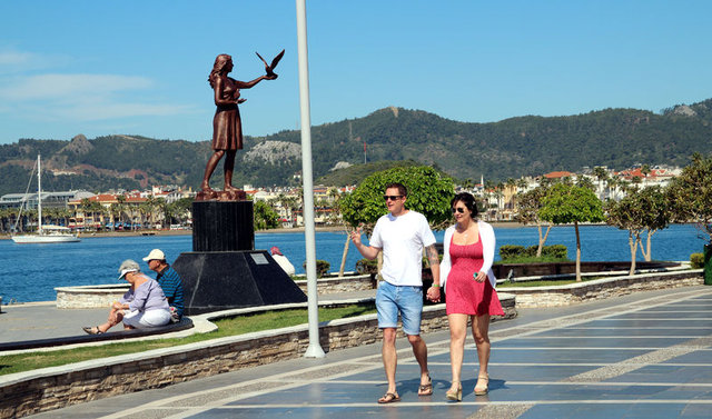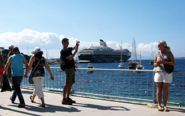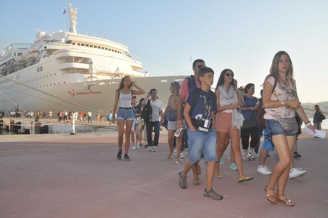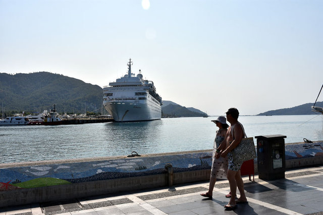 Yunanistan'ın Santorini Adası'ndan gelen gemiden inen turistler, gümrük işlemlerinin ardından limandan ayrıldı. Turistlerden bazıları, otobüslerle kral mezarlarıyla ün yapmış, Ortaca'nın Dalyan Mahallesi'ne gitti, bir kısmı da jeep safariyi tercih etti. Bazı turistler de Marmaris'teki yat limanında yürüdü, kapalı çarşıda alışveriş yaptı.