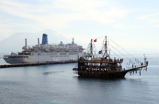 Antalya'ya iki kruvaziyer ile 1.584 turist geldi
