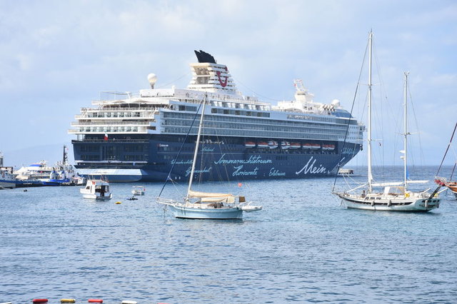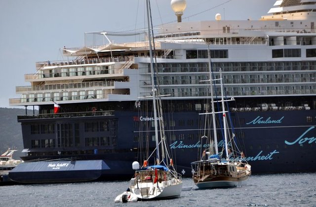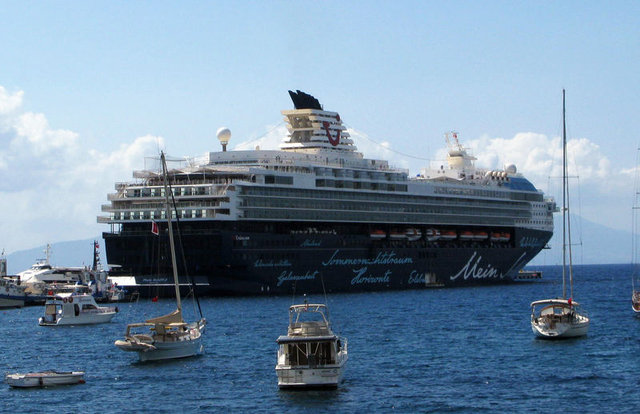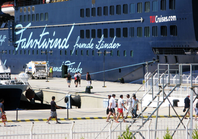 Yunanistan'ın Santorini Adası'ndan gelen gemide, çoğunluğu Alman 2 bin 99 yolcu ile 830 personel olduğu öğrenildi.