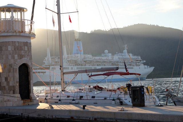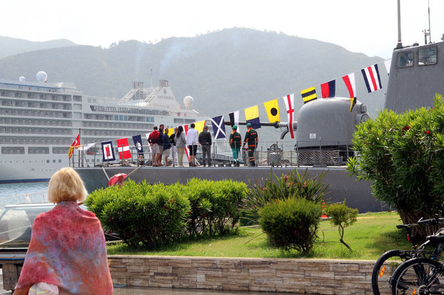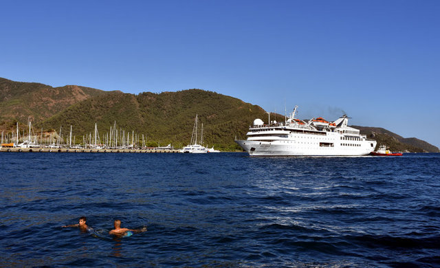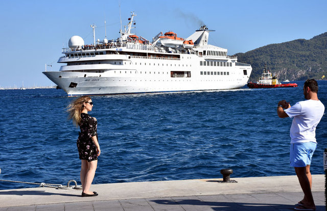 Yunanistan'ın Santorini Adası'ndan gelen kruvaziyer, 10 Nisan'da Marmaris Limanı'na demirledi.