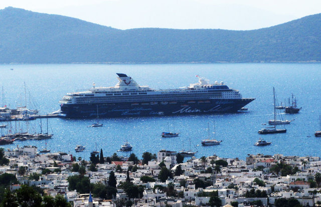 Yunanistan'ın Mikonos Adası'ndan gelen, çoğunluğu Alman 2 bin 116 yolcusu ile 804 personeli bulunan geminin, bu sezon Bodrum'a 11'inci seferini yaptığı belirtildi.