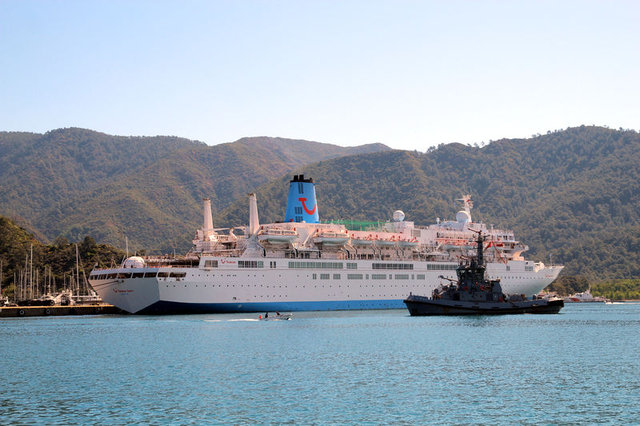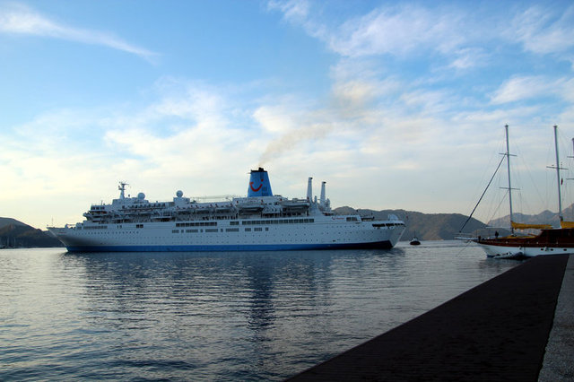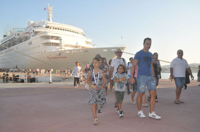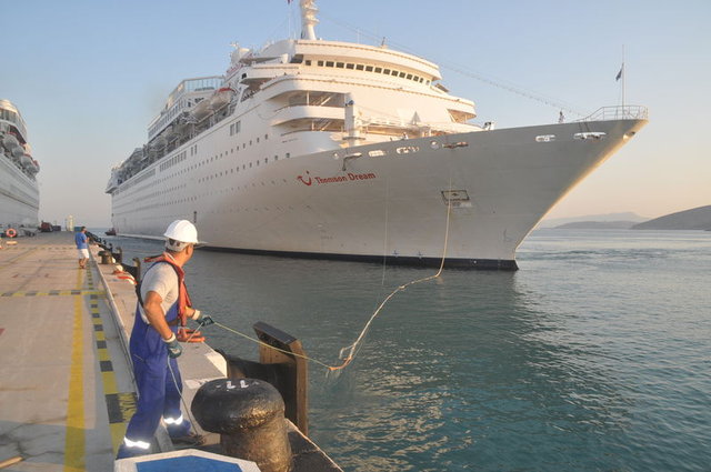 Malta bayraklı "Thomson Dream" adlı kruvaziyer, bin 510 yolcusuyla eylül ayının ikinci haftasında Marmaris Limanı'na yanaştı. Sabahın ilk ışıklarıyla limana yanaşan gemide, çoğunluğu İngiliz vatandaşı bin 510 yolcu ve 630 kişilik mürettebat bulunuyor.