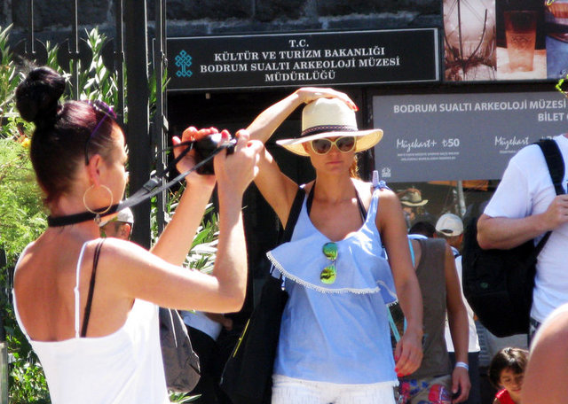 Turistler, Bodrum manzarası karşısında hatıra fotoğrafları da çektirdi.