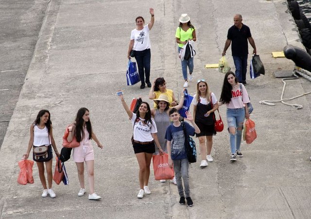 Gemilerden inen ABD, İspanya, İngiltere, Kanada, İtalya ve Portekiz vatandaşlarından bazıları ilçe merkezinde alışveriş yapmayı tercih etti.