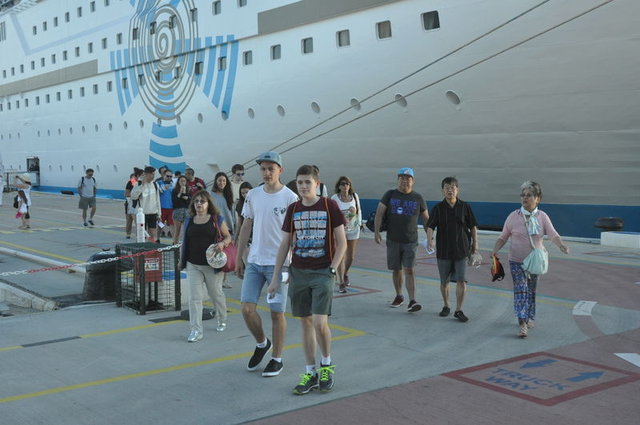 Kruvaziyer yolcuları, yat limanında yürüyüş yaptı ve kapalı çarşıda alışveriş gerçekleştirdi.