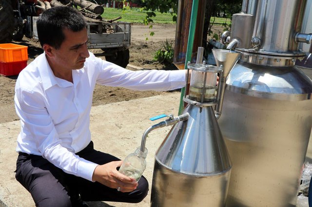 "Distilasyon ünitesini çalıştırdığımızda, yaklaşık 100 kilo çiçekten 2 kilogram civarında saf lavanta yağı elde ettik. Normal şartlarda elde edilebilecek yağ miktarı yüzde 0,8 ile yüzde 2,6 arasında. Bizim elde ettiğimiz yağ oranı yüzde 2, dikkat edildiğinde oldukça yüksek bir oran. Ürettiğimiz yağın kalite analizlerini laboratuvarlarımızda yapabiliyoruz. Çıkarmış olduğumuz yağın değerlendirmesini yaptık.