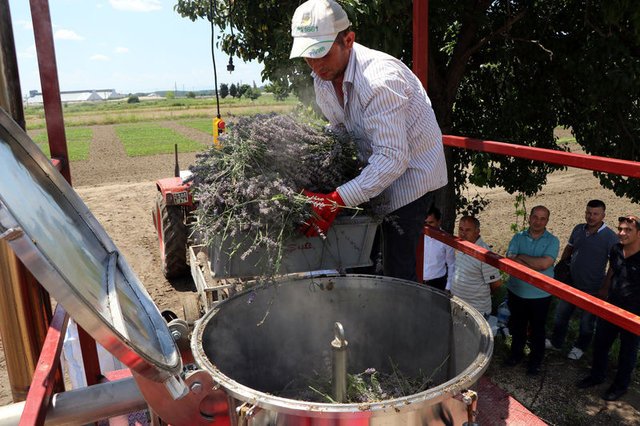 Lavanta ile ilgili çalışmalara 4 yıl önce başladıklarını belirten Tülek, "Geçen hafta düzenlediğimiz tarla günü kapsamında lavanta hasadına başladık. Bugün burada 2 yaşındaki lavantalarımızın hasadını gerçekleştiriyoruz ve yağ çıkarmak için distilasyon ünitesini enstitümüzde kurduk. Hasadımızla birlikte bugün ilk kez lavantalarımızdan yağ elde ediyoruz" dedi.
