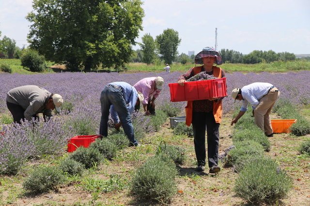Öte yandan Trakya Tarımsal Araştırma Enstitüsü bahçesine dikilen 6 bin lavanta fidanı, etkileyici rengiyle çiçeklenme aşamasını tamamlamasının ardından hasat edildi.
