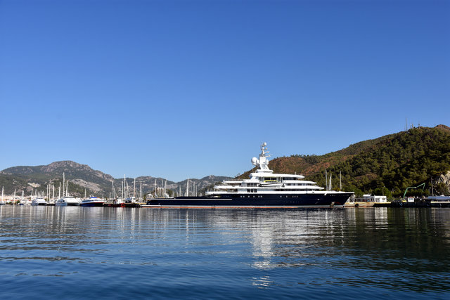 Yaklaşık 6 haftadır Muğla'nın koylarını gezen, Bodrum'dan sonra Datça ve Marmaris'te demirleyen yat, geçen hafta ilçedeki marinalara sığmadığı için Marmaris Cruise Port Limanı'ndaki küçük iskeleye yanaşmıştı.