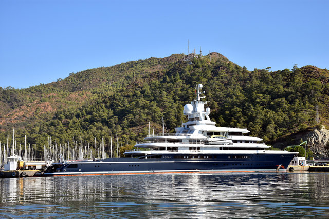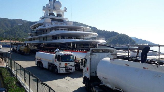 Rus iş adamı Farkhad Akhmedov'a ait olduğu belirtilen lüks yata, 13 tankerle 375 bin litre yakıt ikmali yapıldı.