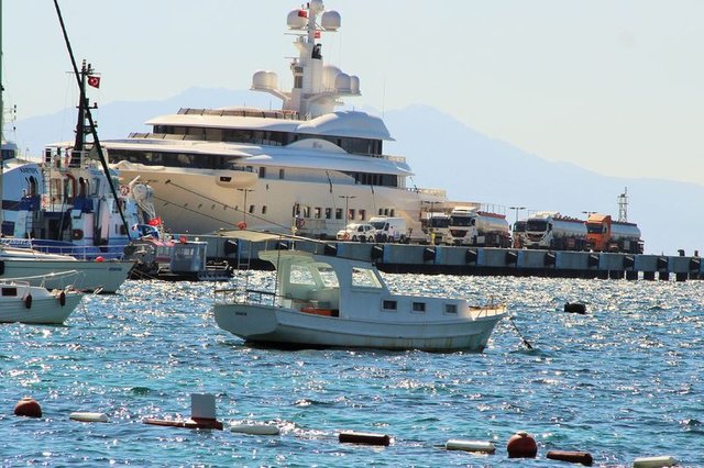 Yunanistan' ın Flisvos Adası'ndan gelen ultra lüks yat, yerli ve yabancı turistlerin ilgi odağı oldu.