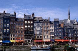 Honfleur, dar sokakları, eski kaldırım taşları ve ma­salsı evleriyle bir deniz ka­sabası.