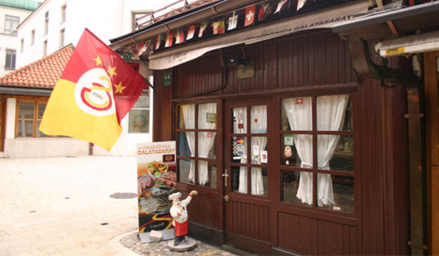 *Eski Galatasaraylı futbolcu Tarık Hodzic'in Baş Çarşı'daki Galatasaray köftecisi