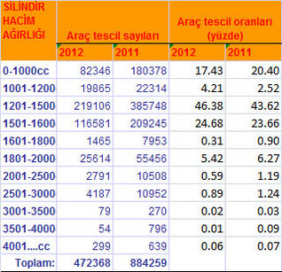 Yukarıda da görüldüğü gibi ÖTV'si artırılan segment olan 1600 cc'nin üzerindeki her segmentte araç tescil sayıları düşmüş. Peki bu talep nereye kaymış? Hükümetin yüzde 90 olarak niletendirdiği segmentteki nüfus ise bir hayli artmış. Özellikle de 1000-1600 cc arasındaki segmente. Ve o yüzde 90'lık kesim yüzde 92'ye ulaşarak ÖTV zammından kaçmış.