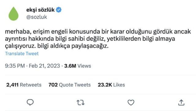 Erişim sorunlarının ardından Ekşi Sözlük'ten yapılan açıklamada "Merhaba, erişim engeli konusunda bir karar olduğunu gördük ancak ayrıntısı hakkında bilgi sahibi değiliz, yetkililerden bilgi almaya çalışıyoruz. bilgi aldıkça paylaşacağız." denilmişti.