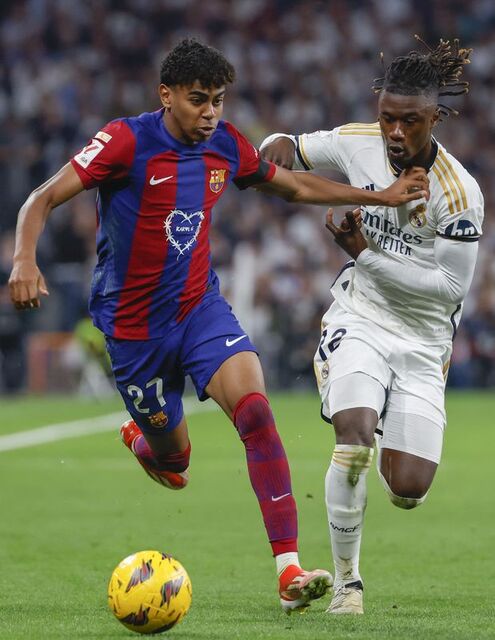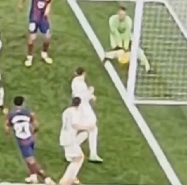 Skor 1-1 iken 28. dakikada Lamine Yamal'ın şutunda uzun süre topun çizgiyi geçip geçmediği tartışıldı.