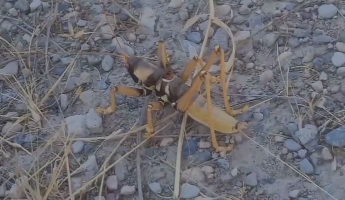 Elazığ'ın Baski ilçesine bağlı Aşağı Kuluşağı köyünde bir vatandaş, tarlada dev bir çekirge fark etti. İlk defa böyle bir çekirge gören vatandaş, internetten yaptığı araştırmada çekirgenin tarıma zararlı böcekleri yiyerek beslenen etçil bir tür olduğunu öğrendi.