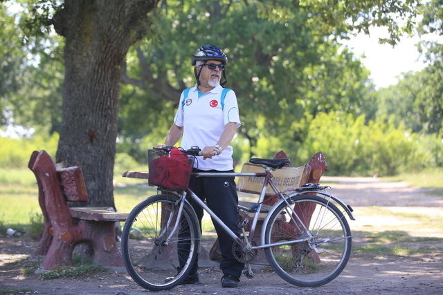 Kırklarelili emekli öğretmen 77 yaşındaki Galip Tarhan'ın bisiklete ilgisi 8 yaşında biriktirdiği harçlıklarıyla kiraladığı bisikletle başladı.