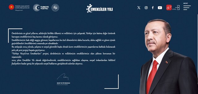 'Emekliler.gov.tr' sitesinin ana sayfasında Cumhurbaşkanı Recep Tayyip Erdoğan'ın emekli vatandaşlar için kaleme aldığı yazısı yer alıyor. Erdoğan'ın yazısı şöyle;