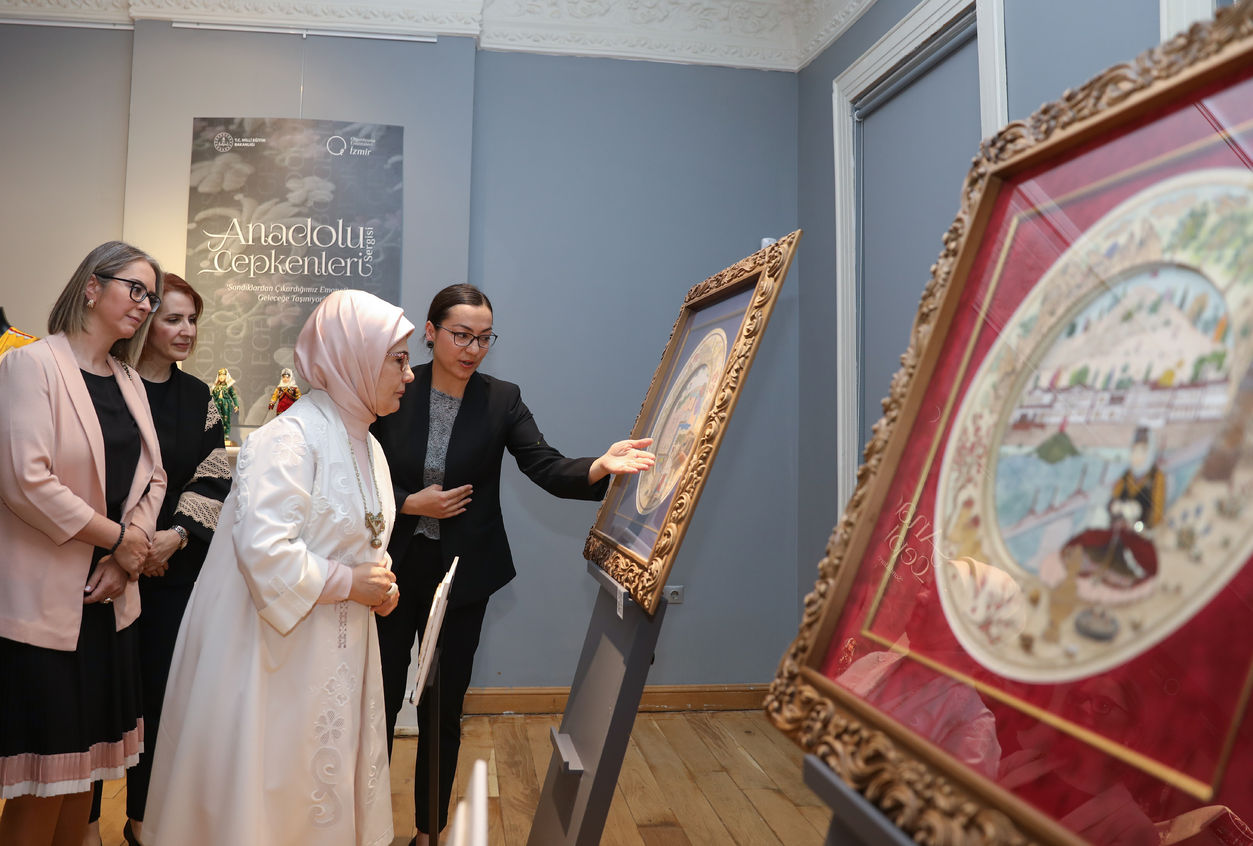 Emine Erdoğan ve beraberindekiler dantel geri dönüşüm atölyesini gezdikten sonra 'Anadolu Cepkenleri' sergisiyle nakış, minyatür ve iğne oyası uygulama alanlarını ziyaret etti. Açılışa, AK Parti İzmir Milletvekili Ceyda Bölünmez Çankırı, Milli Eğitim Bakanı Mahmut Özer'in eşi Nebahat Özer, İzmir Valisi Yavuz Selim Köşger'in eşi Fatma Köşger, İzmir İl Milli Eğitim Müdürü Murat Mücahit Yentür ve diğer ilgililer katıldı.