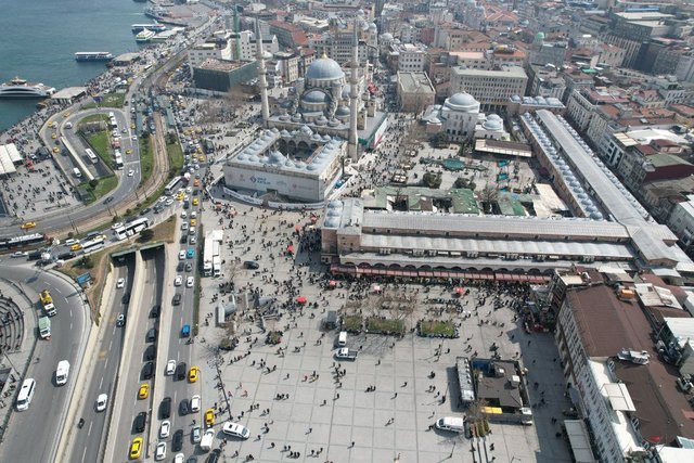Ramazan Ayı'na sayılı günler kala Eminönü'nde yaşanan alışveriş telaşı drone ile görüntülendi.