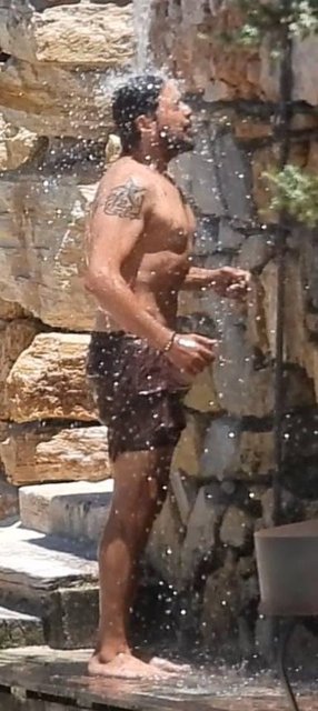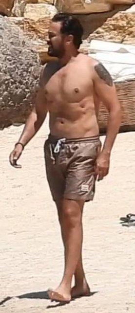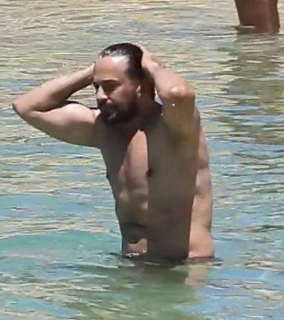 Yeni projesi için 12 kilo veren Emre Altuğ, bir süre denizde yüzdükten sonra duş alıp güneşlendi.