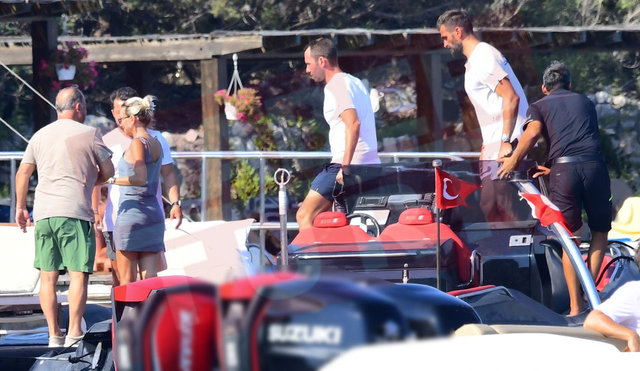 Önceki gün Türkbükü'de eşiyle birlikte görüntülenen Belözoğlu, bot ile Fatih Terim'in iskelesine yanaştı. Emre Belözoğlu, eski hocası ile hasret giderdi.