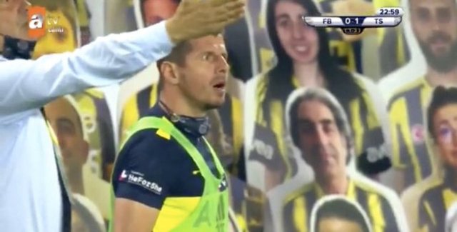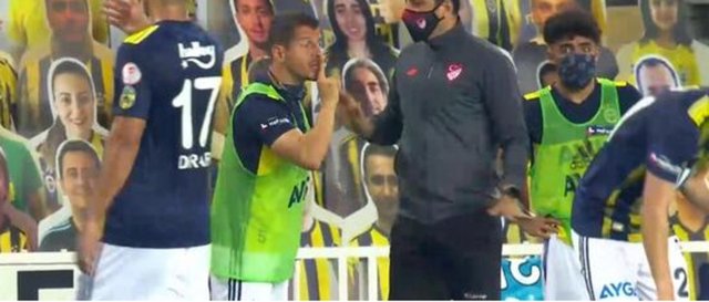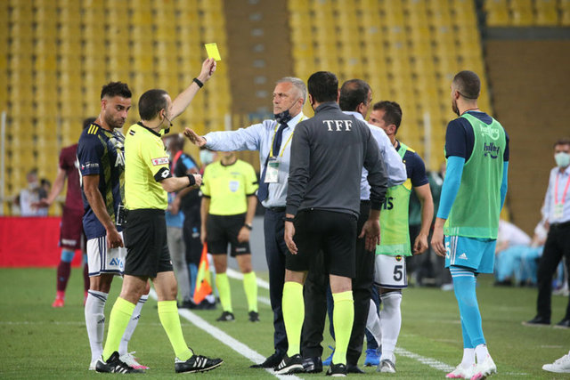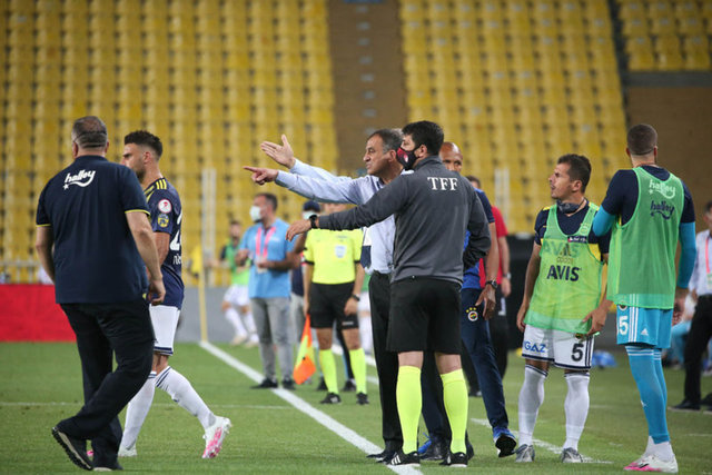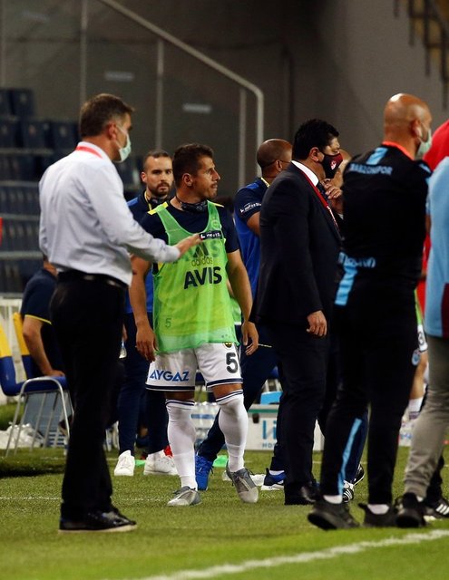 Bu kart sonrası Emre Belözoğlu itirazlarına devam etti ancak Volkan Demirel, sarı lacivertli oyuncuyu koluna girerek soyunma odasına götürdü.