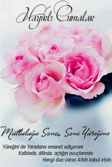 Allah'ım! Bana kendi sevgisini ve senin yanında sevgisi bana fayda verecek kimsenin sevgisini ver. Cumanız mübarek olsun.