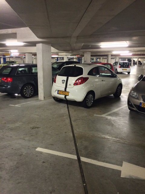 "Otopark zeminindeki çizgi bu arabanın üzerindeki çıkartmayla aynı hizada."