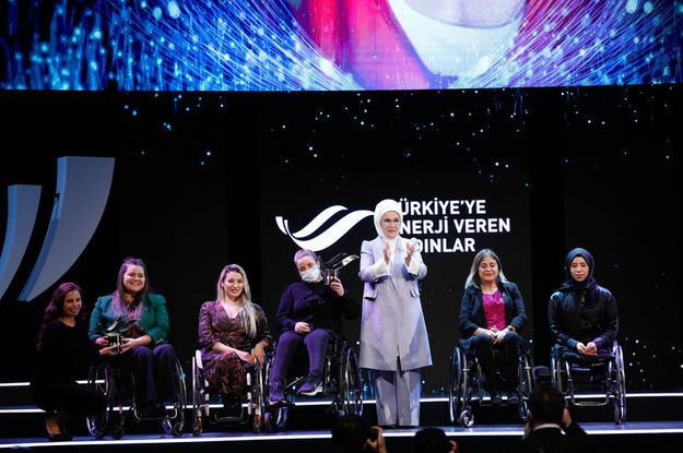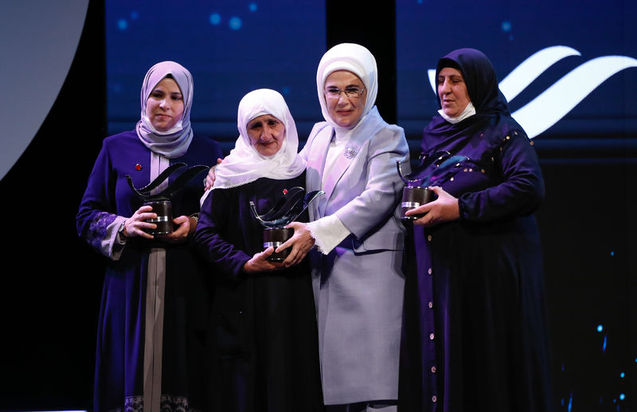 İlham Veren Kadın Ödülü 2020'nin kazananı dünyadaki "En İyi 10 Öğretmen" arasında gösterilen ve Samsun'da öğretmenlik yapan Nurten Akkuş ile 2022'nin kazananı olan Tokyo 2020 Olimpiyatları'nda madalya alan kadın sporcular da ödüllerini Emine Erdoğan'dan aldı.