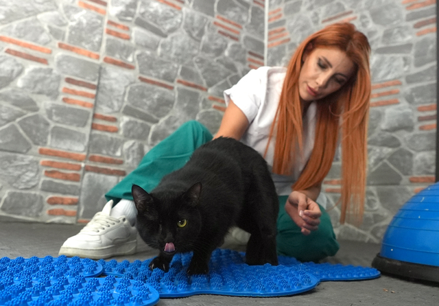 Bu sürecin tamamlanmasının ardından yürümekte güçlük çeken Zeytin'in fizik tedavi için kendilerine getirildiğini ifade eden Denli, tedaviye başladıklarında kedinin kaslarının çok zayıf olduğunu anlattı.