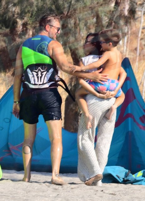 Oğlu ve kızıyla keyifli vakit geçiren Alkoçlar, yaklaşık bir saat sonra çocuklarıyla birlikte denizden çıkan eşini karşıladı.