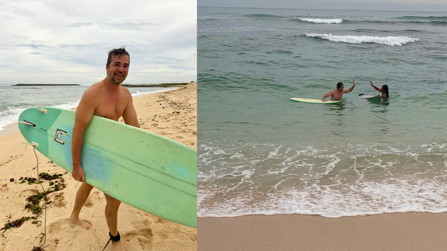 Eşi Neslişah Alkoçlar ile tatil yapmak için Bali'ye giden Engin Altan Düzyatan, Hint Okyanusu'nda sörf yaptı
