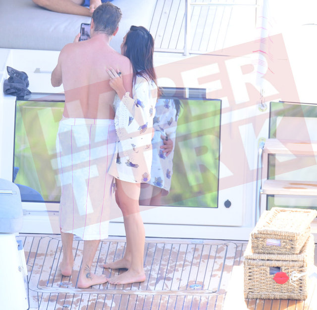 İkili, telefon görüşmesi yaparken birbirlerine sarıldı.