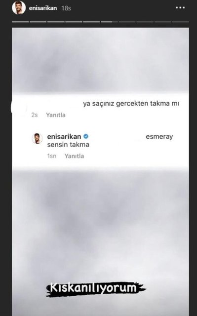 Arıkan, takipçisinin ‘Ya saçınız gerçekten takma mı?’ sorusunu karşılık olarak ‘Sensin takma. Kıskanılıyorum’ notunu yazdı.