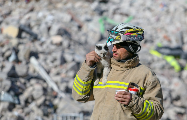 Enkaz adı verilen kedi, kurtarma ekibinin maskotu oldu