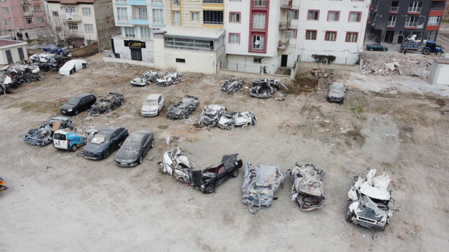 Malatya'da enkazdan çıkarılan hurdaya dönmüş araçlar sahiplerini bekliyor