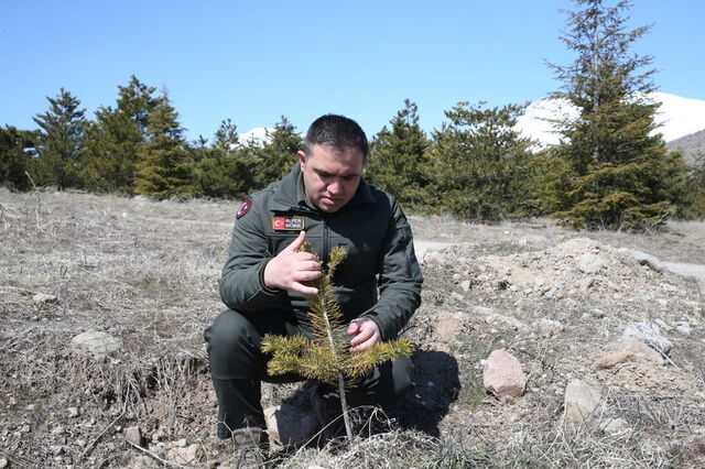 Dikim yapılacak bölge ve türleri önceden belirlediklerini anlatan Biberci, "Burada soğuğa dayanıklı türler seçiyoruz. Yüksek kısımlara soğuğa dayanıklı sarıçam ve huş, alt kısımlara geldikçe karaçam ve sedir dikiyoruz. Bunların yanı sıra badem, mahlep gibi türlerden de dikim yapıyoruz. Bunun da ekosisteme ve yaban hayatına faydası oluyor" diye konuştu.