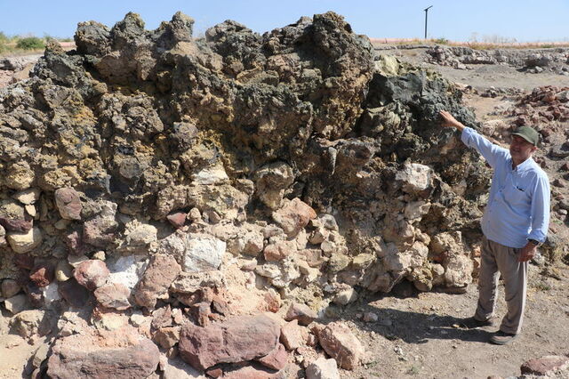 Neredeyse cam haline gelecek kadar yüksek ısıda yanmış. Kerpiçler ve taşlar erimiş. Bu derecede yüksek bir ısıya maruz kalmış. Bunun sebebi, muhakkak ki bu yapının inşaatında kullanılan çok sayıdaki ağaç ve özellikle de bizim reçineli ağaç dediğimiz çam, ardıç gibi sağlam ağaçların burada bol olarak bulunması ve gerçekten de bütün alan içinde bu yangının tespit etmek mümkün.