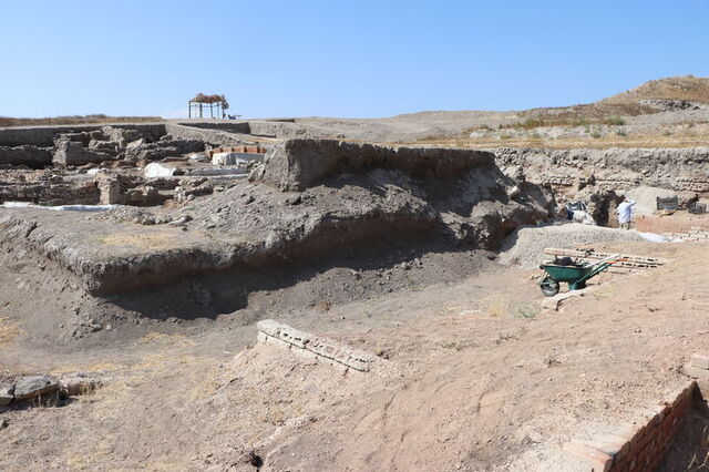 Daha küçük ordulara sahip ya da kuvvete sahip beylikler, kendi bölgelerini kontrol ederlerdi. Şimdi bizim 2010 yılında ağırlıklı olarak başladığımız bu tepe çalışmaları sırasında açığa çıkardığımız çok büyük bir bina var. Arkada bulunan binanın bir kısmını şu anda görebilirsiniz. Bu yapının şimdilik daha 4'te 1'ini ancak açığa çıkarabildik. Daha 4'te 3'lük kısmı toprak altında ve çalışmalarda o plana bağlı olarak yürüyor. Planı tespit etmek için çalışıyoruz" dedi.