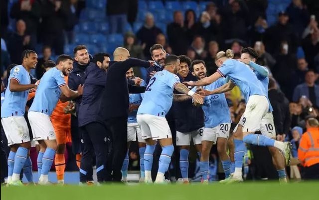 Manchester City futbolcuları maçın ardından Erling Haaland'ı özel olarak tebrik ettiler.